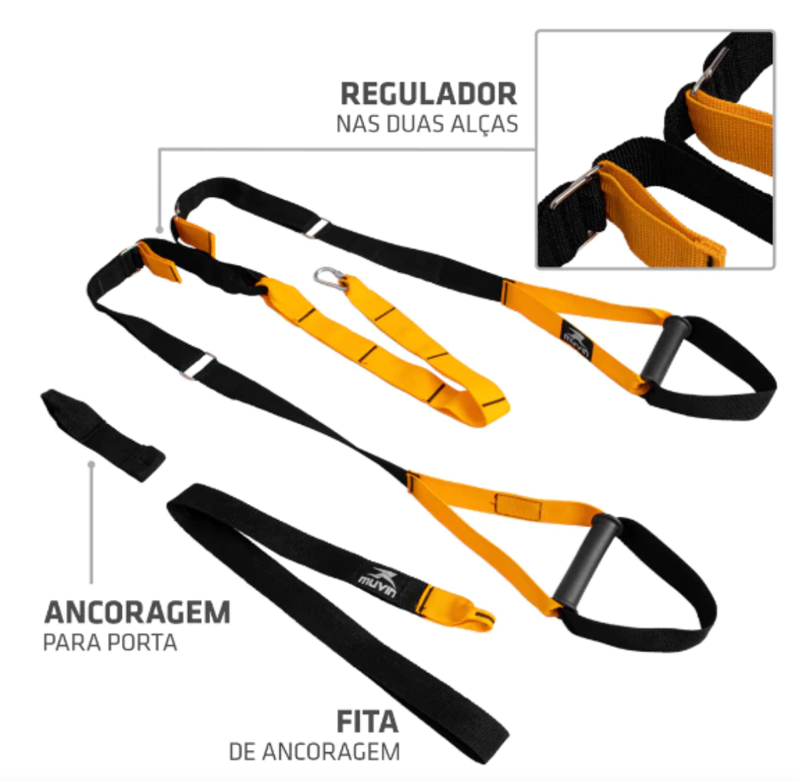 A Fita de Suspensão Regulável trabalha força, resistência, flexibilidade, capacidade cardiorrespiratória, abdômen e entre outro benefícios. Possui a vantagem de ser leve e fácil de transportar, você pode treinar em qualquer lugar suspendendo-o em um ponto de fixação.