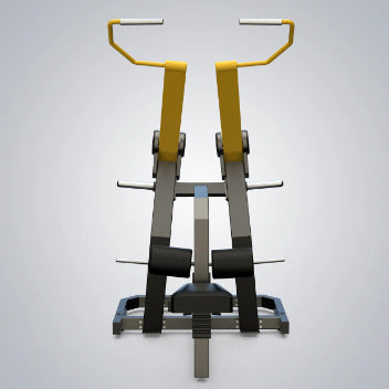 O Puxador Articulado Premium oferece um arco natural de movimento e maior alcance, permitindo que os usuários treinem com eficácia os dorsais e bíceps.