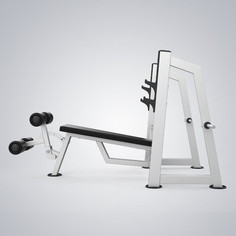O Supino Declinado Premium permite que os usuários executem a pressão descendente sem rotação externa excessiva dos ombros.