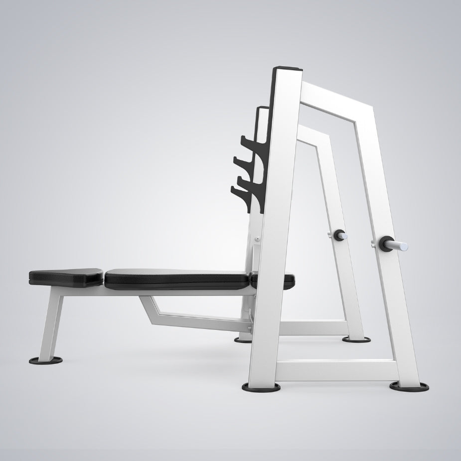 O Supino Reto Premium fornece uma plataforma de treinamento sólida e estável com a combinação perfeita de banco e rack de armazenamento.